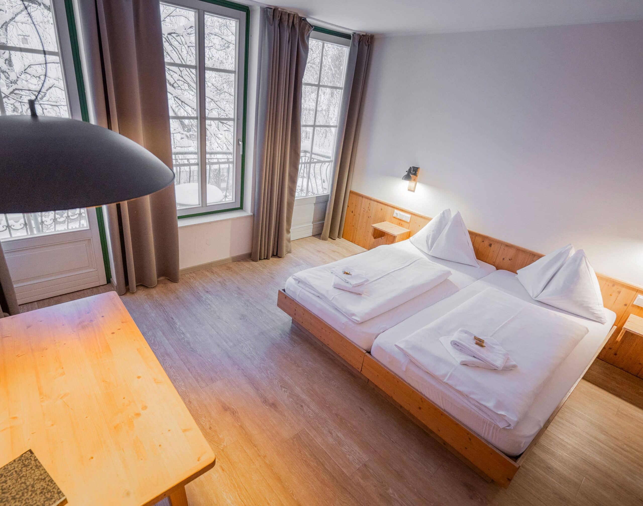 Die Auswahl der Zimmer reicht von Einzel- und Doppelzimmer im Haupthaus bis zu großen Wohnungen (max. 6 Personen). Finde alle Optionen und Möglichkeiten auf der Homepage des Feriendorfs.